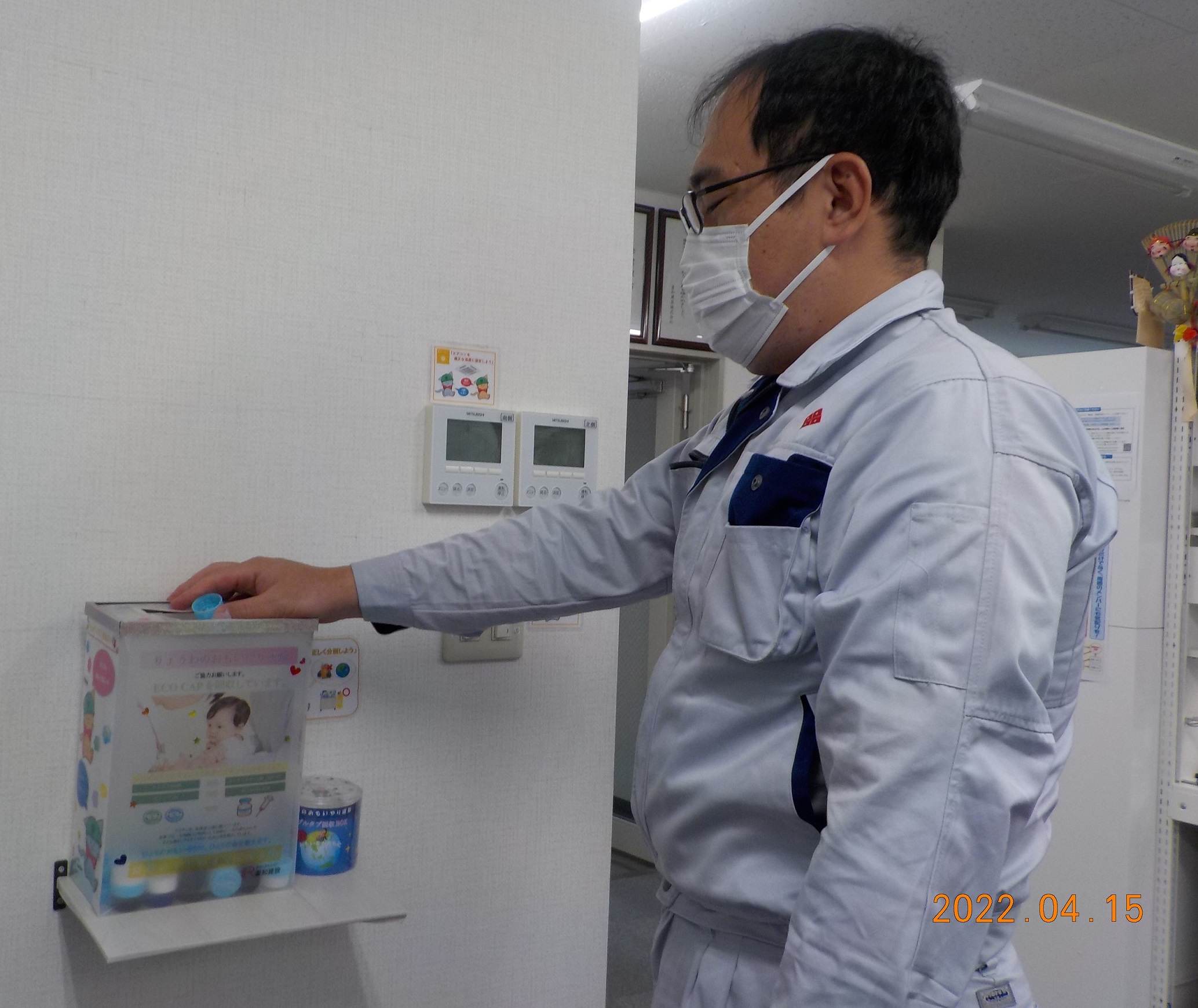 当社のおもいやり運動も、今年で5年目を迎えています。この運動に賛同していただいた取引先(第一生命様、りそな総合研究所様)にもご協力をいただき、また現場への設置も複数個所に及びましたので、45期も多くのエコキャップ・プルタブを収集することができました。
